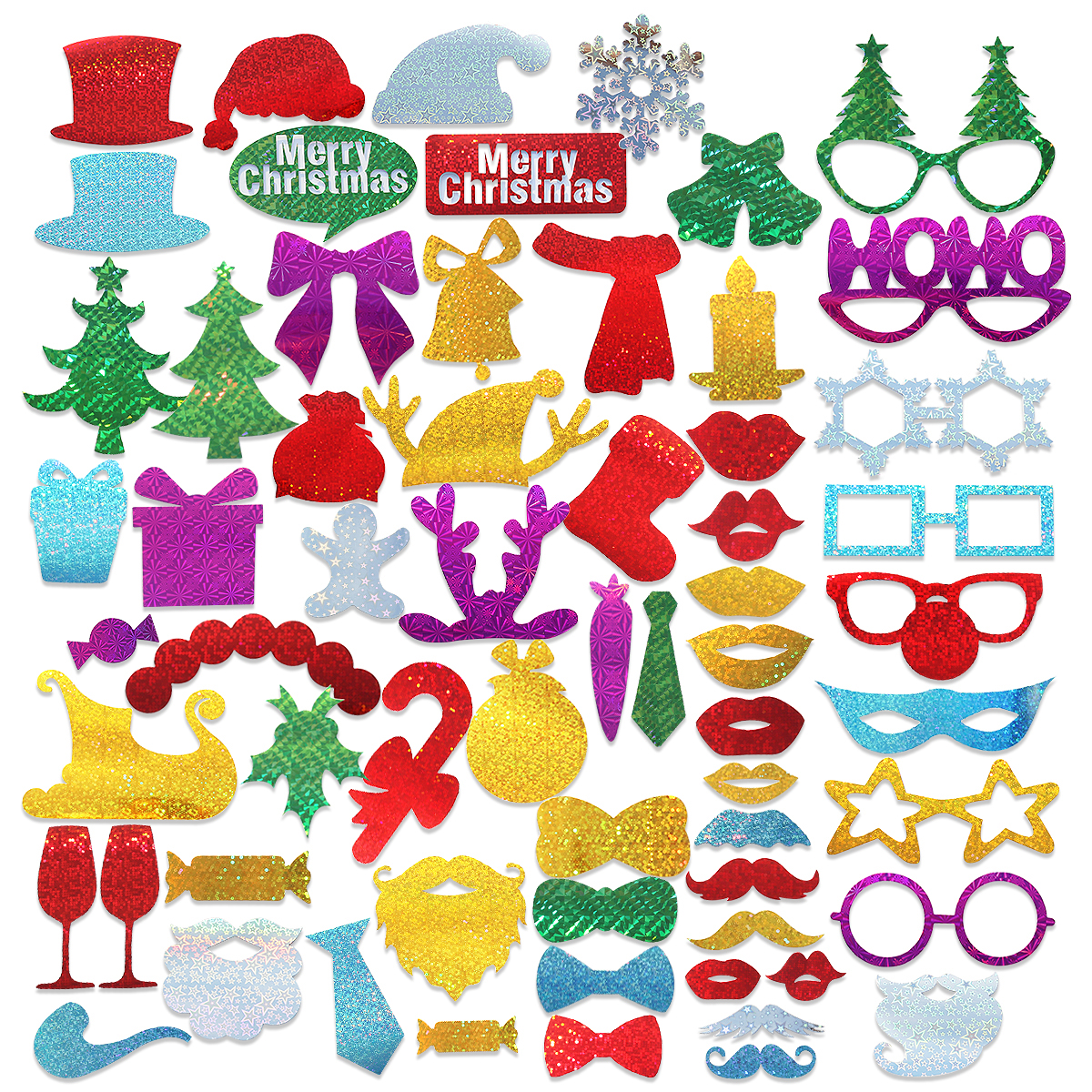 PBPBOX 60pcs Glitter Party Photo Booth Props DIY Kit for Merry Christmas Photobooth Dress-up Accessories & Party Favors
